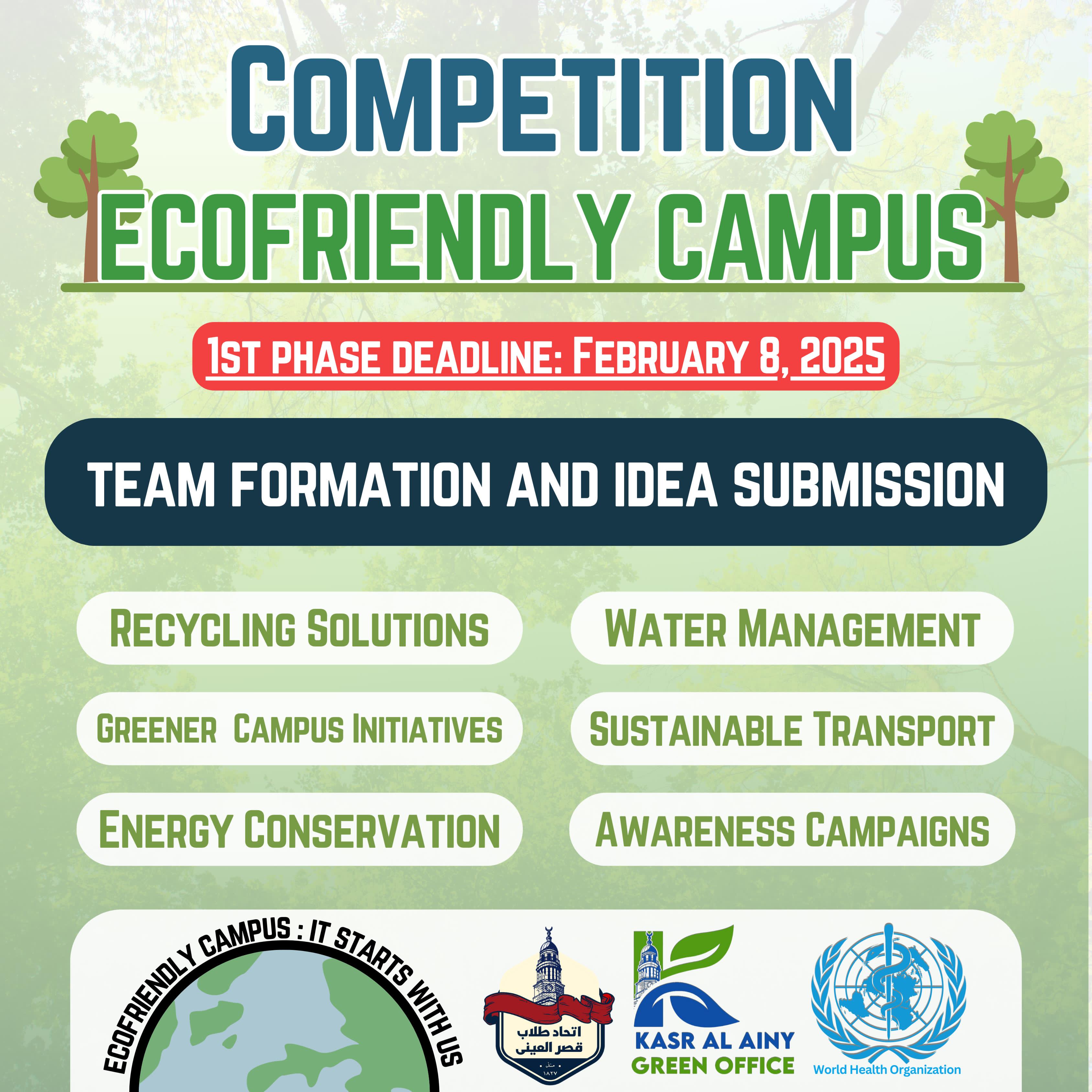 تحت عنوان “Eco-Friendly Campus: It all starts with us” بالتعاون مع منظمة الصحه العالميه مكتب مصر تحت رعايه