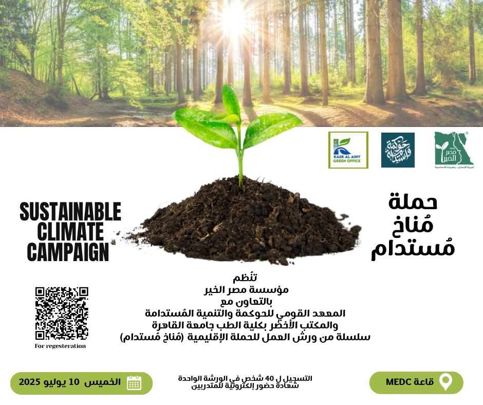The event covered topics related to climate change, its impact on the environment and health, sources of emissions, and how to reduce them. The event included general knowledge competitions to engage the audience and encourage participation. The annual art exhibition of Kasr Alainy students under the title “Green Kasr” was held alongside the event.